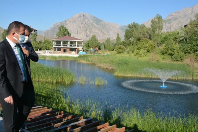 Hakkari Valisi ve Belediye Başkan Vekili İdris Akbıyık, yapım çalışmaları bitmek üzere olan Golazüryan Sosyal Tesis Projesi çalışmalarını yerinde denetledi.