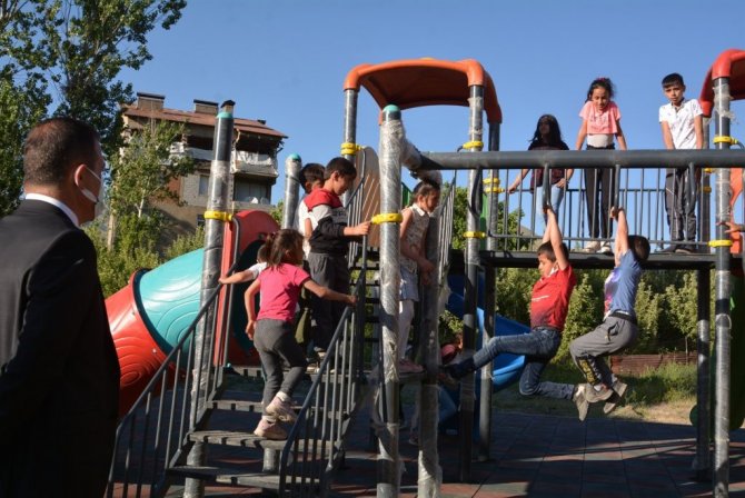 Belediye Başkan Yardımcısı Hamit Zibek ile birlikte tesis çalışmalarını yerinde denetleyen Vali İdris Akbıyık, çalışmalar hakkında bilgi aldı. Ziyaretleri sırasında çocuklarla yakından ilgilenen Vali Akbıyık, çocukları oyun parkına davet etti. Mahallelerinde ilk defa oyun parkı görmenin mutluluğunu yaşayan çocuklar ise Vali Akbıyık'a teşekkür ederek pakta oynamanın sevincini yaşadılar.