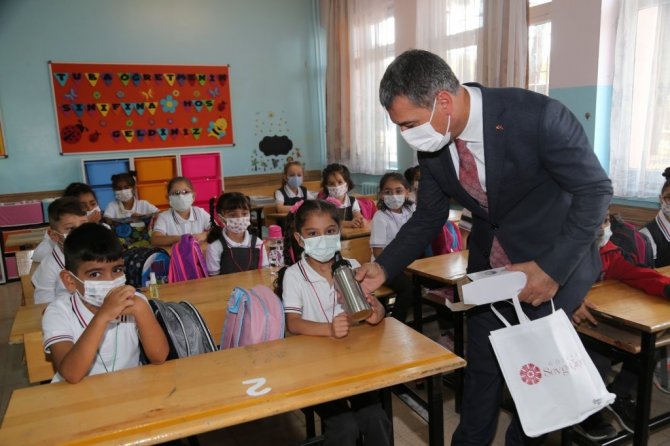 Gölbaşı Belediye Başkanı Ramazan Şimşek, ilk ders zilinin çalmasıyla okul heyecanı başlayan öğrencileri ziyaret etti. Suluk hediyesi ile miniklerin yüzünü güldüren Başkan Şimşek, salgına karşı dikkatli olmaları konusunda da öğrencileri uyardı.