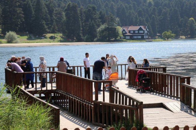 Bolu'nun önemli turizm merkezi Gölcük Tabiat Parkı güzel havayı fırsat bilen tatilcilerin akınına uğradı.