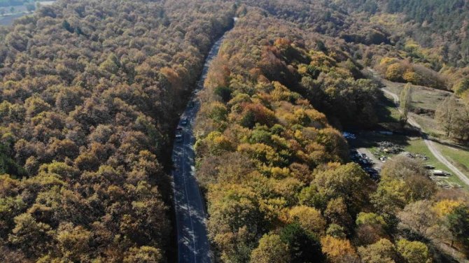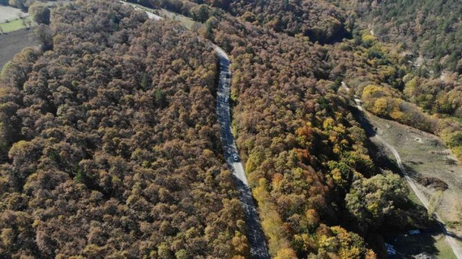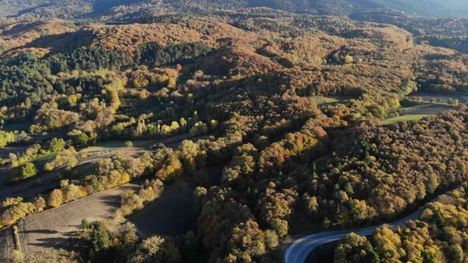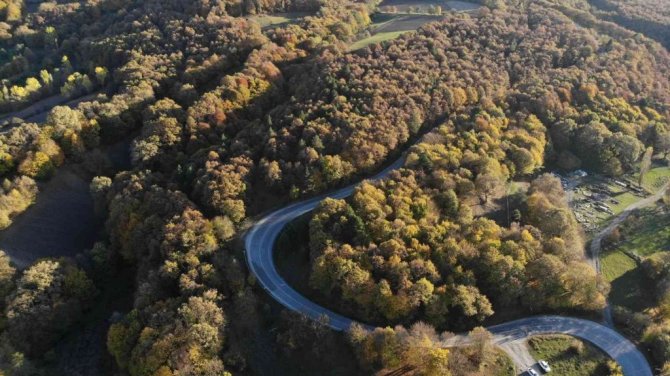 Bolu'nun önemli turizm merkezi Gölcük Tabiat Parkı'nda sonbaharın gelişiyle birlikte renk cümbüşü yaşatan ağaçların havadan görüntüsü mest etti.