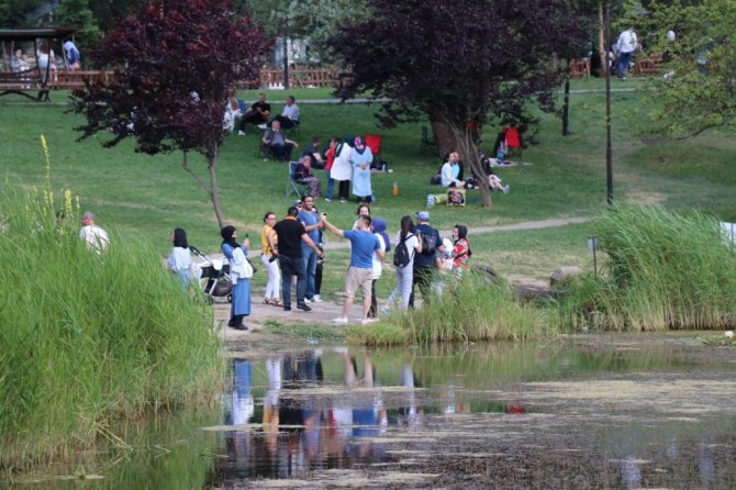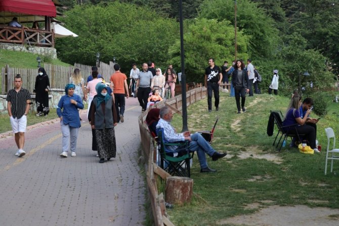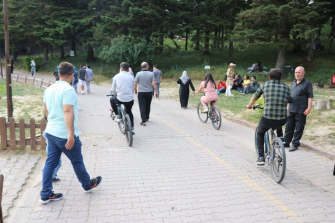 Bolu'da bayram tatilini doğayla iç içe geçirmek isteyen vatandaşlar, Gölcük Tabiat Parkı'na akın etti.