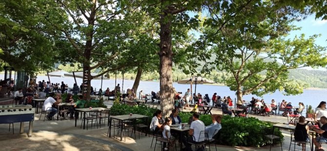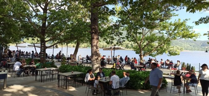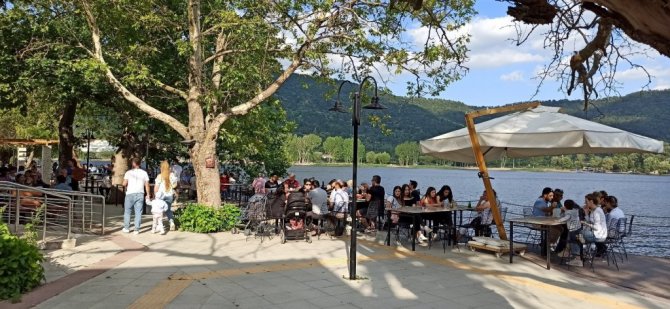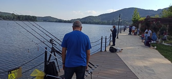 Göl çevresine serinlemek için gelen kimi vatandaşlar, çocuklarıyla birlikte balık avlayarak vakit geçirirken, kimi vatandaşlar da piknik yapıp ağaç gölgesinde serinledi. Göl kenarındaki çay bahçeleri ise tamamen doldu.