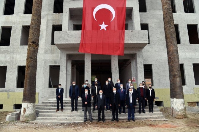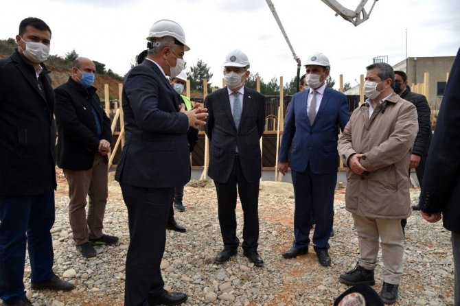 İlk olarak Belediye Hizmet Binası inşaatını inceleyen Vali Yaşar Karadeniz, Belediye Başkanı Kamil Öz'den çalışmalarda gelinen son durum hakkında bilgi aldı.