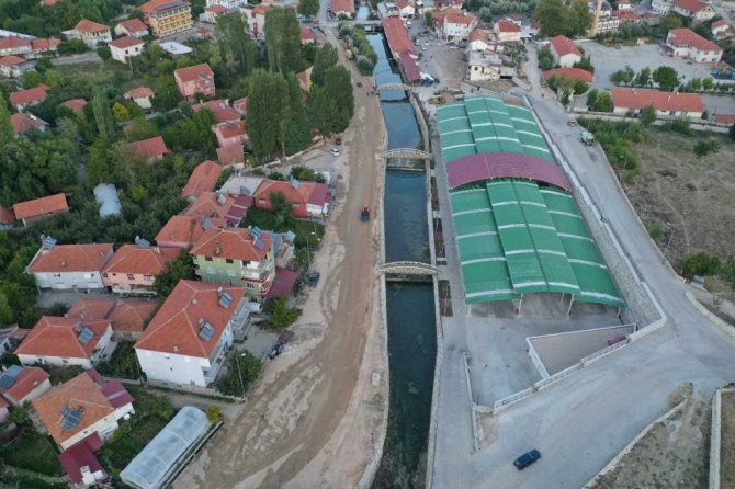 Açıklamada, proje kapsamında araç yolu zemininin yeniden düzenlenip gereken yerlerde refüj ve kaldırım planlandığına işaret edilerek, "Dere çevresi korkulukları, seyir terasları, peyzaj düzenlemeleri, kent mobilyaları ve aydınlatma elemanlarıyla panayır alanı ve çevresi bir bütünlük sağlamaktadır. Proje alanında dere kenarında bulunan dükkanlarda cephe düzenlemesi yapılmıştır. Meydandan panayır alanına giden yol üzerinde otopark planlanmıştır. Yine aynı güzergahta panayır alanı yanı yayalaştırılarak, pergole ve oturma birimleriyle meydanlaştırılmıştır.