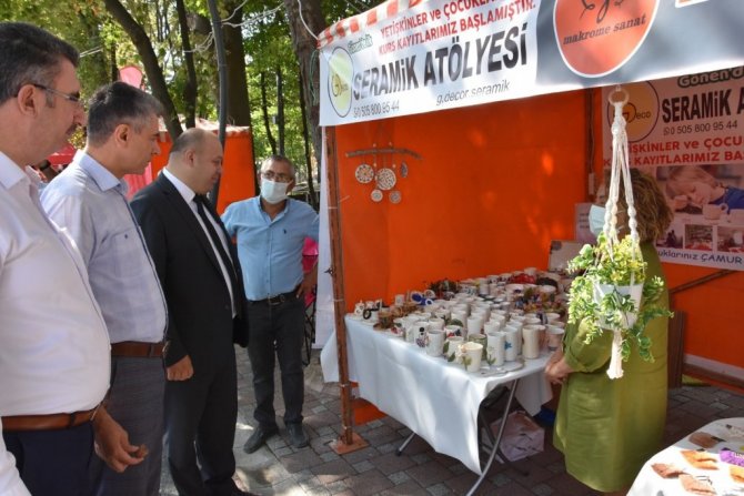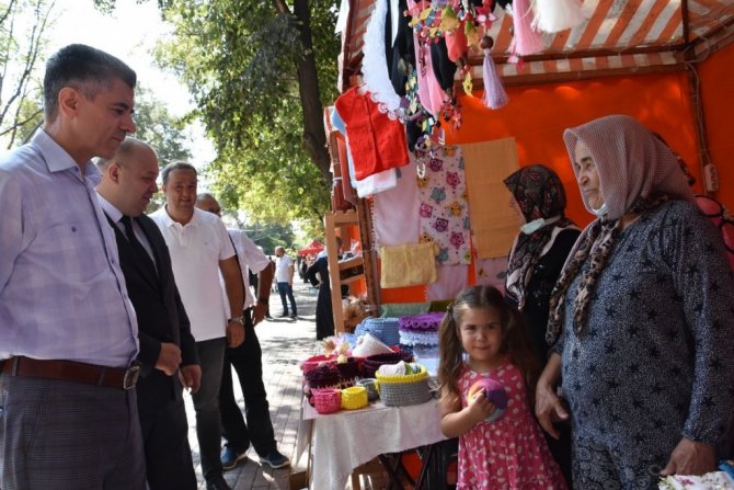 Açılışı gerçekleştirilen stantlarda yöresel ürünler, iğne oyası işçiliği, el yapımı organik bebekler, tarım ürünleri yer almakta.