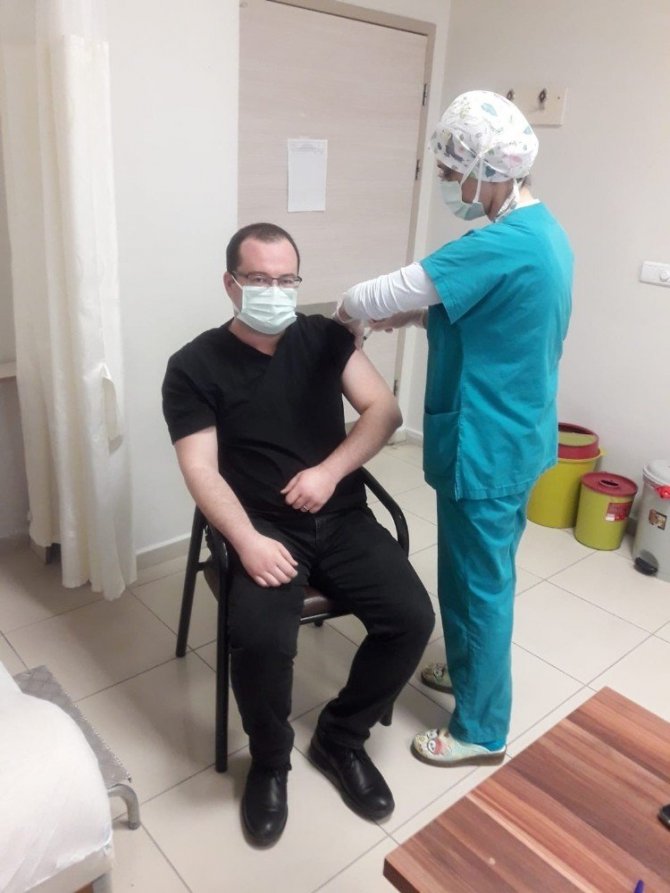 14 Ocak'ta aşının ilk dozu uygulanan Gönen Devlet Hastanesi'ndeki sağlık çalışanlarına 2. doz aşılama bu sabah başladı. İlk aşı Başhekim Dr. Ersin Atıcı'ya yapıldı.
