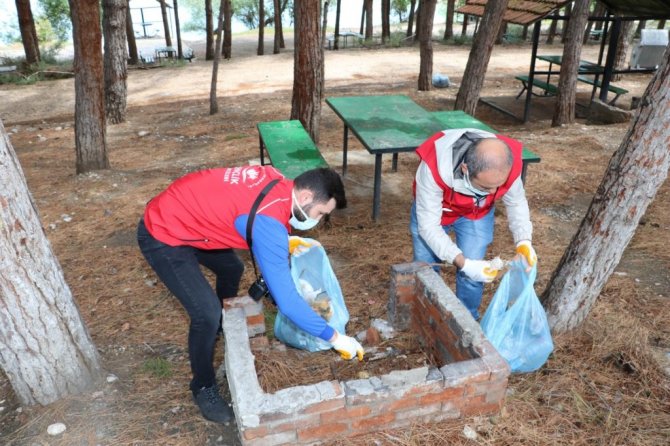 Gönüllü gençler tarafından toplanan ve torbalara doldurulan çöpler ise bölgeye gelen belediye ekiplerine teslim edildi.