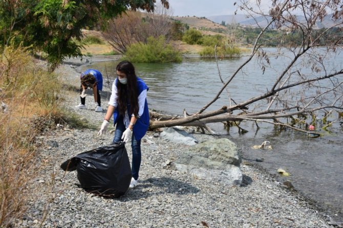 Gönüllü gençler, Hazar Gölü çevresini temizledi
