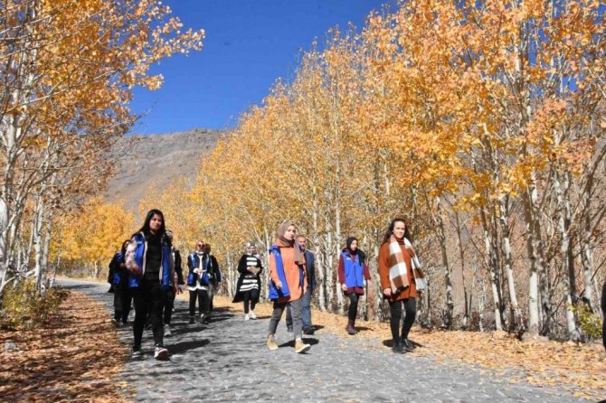 Tatvan Gençlik Merkezi gönüllüleri ve gençlik liderleri tarafından organize edilen doğa yürüyüşü için gençler Nemrut Krater Gölü kenarını tercih etti. Sonbahar renklerinin hakim olduğu bölgede havanın da güneşli olmasını fırsat bilen gençler, doğa yürüyüşünü şarkılar ve türküler eşliğinde gerçekleştirdi. Bol bol fotoğraf çeken gençler, daha sonra Nemrut Krater Gölü kenarında semaver çayı demleyerek halay çekti.