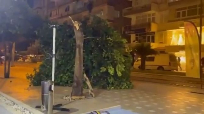 Olay dün akşam 21.30 sıralarında Muratpaşa İlçesine bağlı Gençlik Mahallesi Atatürk Caddesi üzerinde yaşandı. Gövdesi çürüyen yaklaşık 5 metre boyundaki turunç ağacı, büyük bir ses ile gövdesinden kırılarak kaldırıma düştü. Sesi duyan mahalle sakinleri ve esnaflar bölgeye geldiklerinde ağacın kaldırıma devrildiğini fark etti. Durumun belediyeye haber verilmesi üzerine park ve bahçeler ekipleri, kaldırımı kapatan ağacın dallarını parçalayarak kamyonete yükledi.