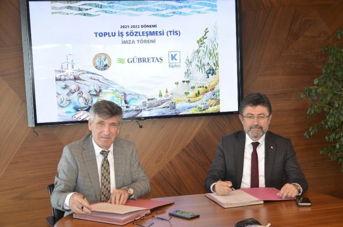 GÜBRETAŞ'ın İstanbul ofisinde yapılan imza törenine Genel Müdür İbrahim Yumaklı, Petrol-İş Sendikası (Türkiye Petrol Kimya Lastik İşçileri Sendikası) Genel Başkanı Süleyman Akyüz, Genel Sekreter Salih Akduman, Genel Yönetim Sekreteri Ünal Akbulut, Kocaeli Şube Başkanı Nesimi Yetişoğlu, KİPLAS (Türkiye Kimya Petrol Lastik ve Plastik Sanayii İşverenleri Sendikası) Genel Sekreteri Saadet Ceylan ve Genel Sekreter Yardımcısı Z. Ulaş Yıldız ile üç kurumun ilgili temsilcileri katıldı.