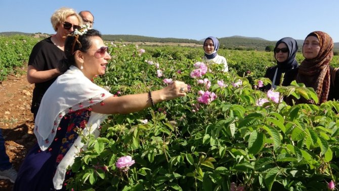 Isparta'da Koku Uzmanı Bihter Türkan Ergül, gül bahçelerinde yerli ve yabancı misafirlerine gül eğitimi verdi.