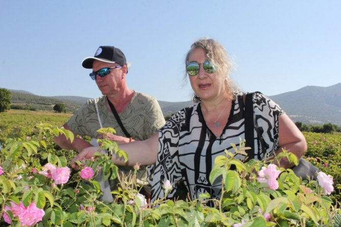 Gül bahçelerini misafirlerine açan üretici Yakup Yolcu da misafirleri ağırlamaktan büyük mutluluk duyduğunu ifade ederek, "Bihter hanım bahçemize bir aydır gelip gidiyor. Gülün anlamı şeklinde eğitimler verdi. Kendilerine çok teşekkür ederiz" diye konuştu.