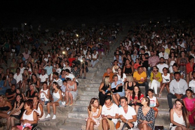 Bodrum antik tiyatroda konser veren ünlü pop sanatçısı Gülşen söylediği şarkılarla hayranlarını coşturdu. Gülşen’in giydiği beyaz tül elbise ve parıltılı çizmeleri ise konsere damgasını vurdu.