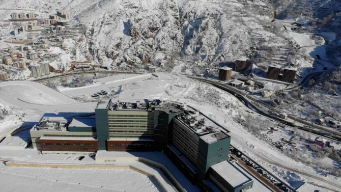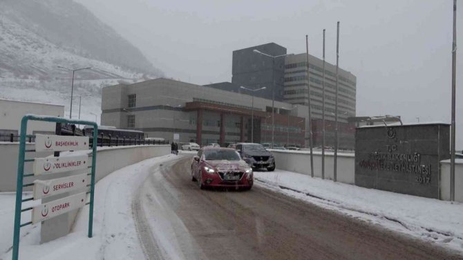 Gümüşhane'de yeni binasında hizmet vermeye başlayan 200 yataklı yeni Gümüşhane Devlet Hastanesi'nin yolu kar yağışı nedeniyle vatandaşlara zor anlar...