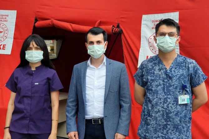 Yapılan çalışmayla ilgili bilgi veren Gümüşhane Merkez Toplum Sağlığı Merkezi Başkanı Dr. Cihangir Aksoy, kent merkezine bağlı köylerde Nisan ayının sonlarına doğru 60 yaş üzeri aşılanmayan vatandaş bırakmadıklarını söyledi. Aşıdaki yaş sınırının aşağıya çekilmesi ve üçüncü doz aşı uygulaması nedeniyle yaşanan yoğunluğun önüne geçmek ve aşı uygulama noktasını artırmak amacıyla Fatih Parkındaki aşı noktasını kurduklarını ifade eden Aksoy, "Toplum Sağlığı Merkezinde 2 aşı odamız var ve orada yoğunluk artınca Valiliğimiz ve İl Sağlık Müdürlüğümüzün desteğiyle UMKE'den getirilen çadırla birlikte nöbetçi doktor ve hemşire arkadaşlarımızla aşı çalışmalarına burada başladık. Biontech aşısında stok sorunumuz yok. Bakanlığımız düzenli olarak aşı takviyesi yapıyor ilimize" dedi.