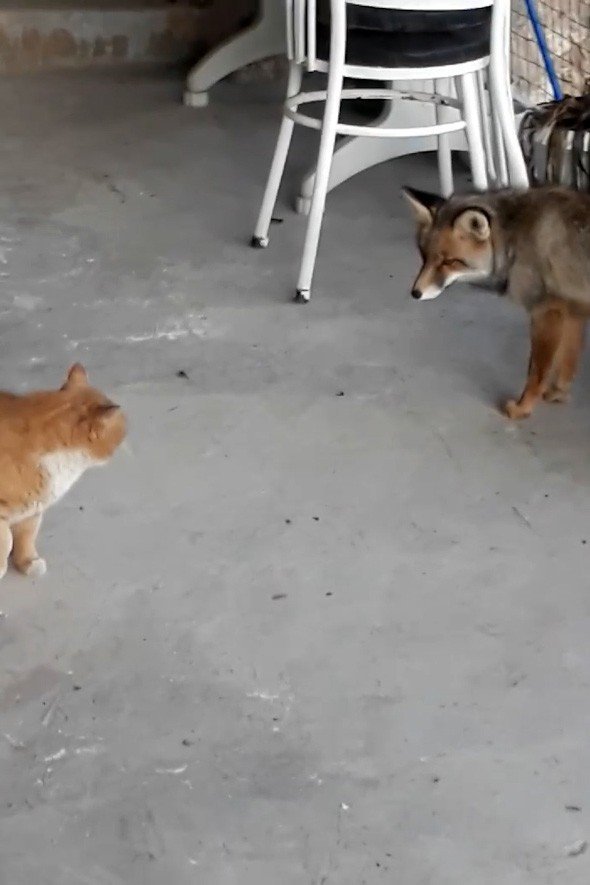 Kediyle tilki yanyana görüntülendi