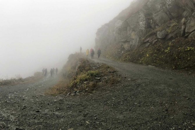 Gümüşhaneli dağcılar dünyanın en tehlikeli karayollarından birisi olarak gösterilen Bayburt-Trabzon arasındaki Derebaşı Virajlarında doğa yürüyüşü gerçekleştirdi.