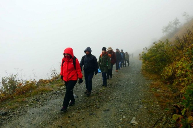 Sisli ve yağmurlu bir havada gerçekleştirilen yürüyüşte sporcular yeniden Dumlu köyüne dönerek etkinliği tamamladı. Yağmur ve sisle birlikte ıslanan sporcular şemsiye ve yağmurluklar altında zaman zaman moral depolamak için horon oynamayı ihmal etmedi.