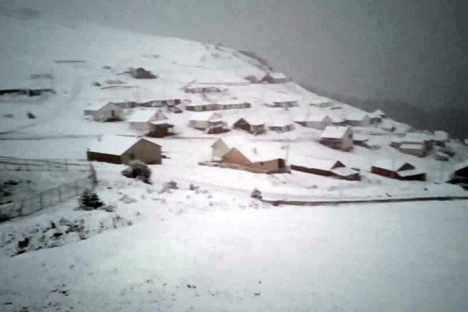 Gümüşhane'de dün başlayan yağmur yağışı sabaha karşı yerini yüksek kesimlerde kar yağışına bıraktı ve yaylalar beyaz örtüyle kaplandı.