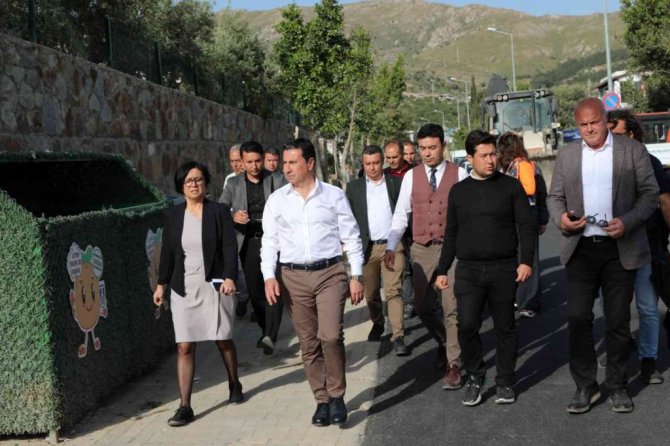 Gümüşlük Mahallesi'nde çalışmaları yerinde inceleyen Bodrum Belediye Başkanı Ahmet Aras, Başkan Yardımcıları İlknur Ülküm Seferoğlu ve Önder Batmaz, Gümüşlük Mahalle Muhtarı Zeki Pay ve birim müdürleri ile birlikte Gümüşlük Mahallesi'nde altyapının bitirildiği ve asfaltlama çalışmalarının tamamlandığı Cumhuriyet Caddesi üzerinde incelemeler yaptı.