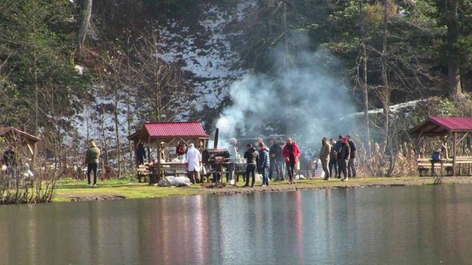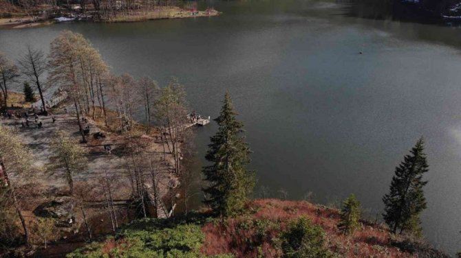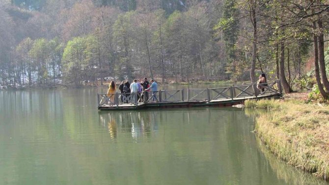Güneşli havayı fırsat bilen vatandaşlar Karagöl’e akın etti