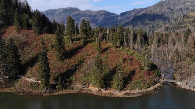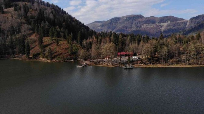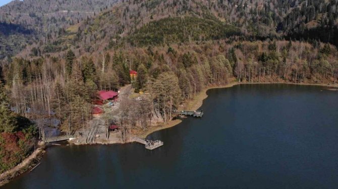 Türkiye'nin saklı cennetleri arasında gösterilen Artvin'in Borçka ilçesinde bulunan Karagöl, hafta sonu havaların ısınmasıyla ziyaretçilerle doldu taştı. Sonbaharın renklerini görmek isteyen ziyaretçiler muhteşem doğanın tadını çıkarttı.