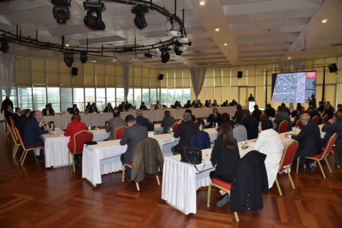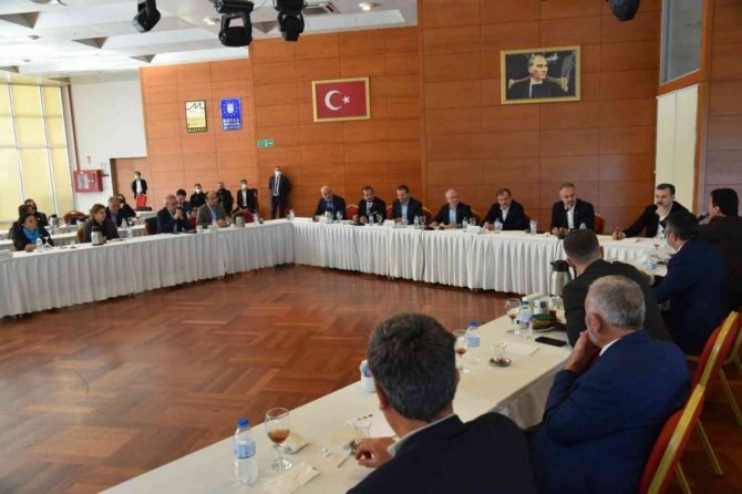 Bursa Merinos AKKM Yıldırım Beyazıt Salonu'nda gerçekleştirilen toplantıya TBMM İnsan Hakları İnceleme Komisyonu Başkanı, Bursa Milletvekili Hakan Çavuşoğlu, milletvekilleri, il yürütme kurulu üyeleri, ilçe başkanları, Büyükşehir Belediye Başkanı Alinur Aktaş ve ilçe belediye başkanları katıldı. On yedi ilçede hayata geçirilen ve gerçekleştirilmesi planlanan projelerin konuşulduğu toplantıda, AK Parti Bursa İl Başkanı Davut Gürkan, yürütülen çalışmalar hakkında bilgiler aldı. Toplantıda konuşan Başkan Gürkan, büyükşehir ve ilçe belediyelerinin çalışmalarının yanı sıra yakın takipçisi oldukları merkezi hükümetçe yürütülen yatırı projeleri ile Bursa'nın her noktasına Bursalılara yakışır hizmetlerin getirilmesi için çalıştıklarını söyledi.