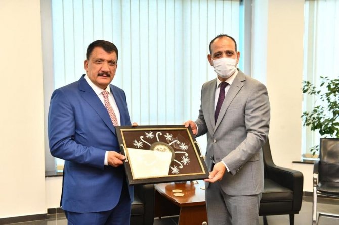 Başkan Gürkan ziyaretleri sırasında Kıbrıs Belediyeler Birliği Başkanı Mahmut Özçınar, Lefkoşe Belediye Başkanı Mehmet Hamamcı ile Gönyeli Belediye Başkanı Ahmet Benli'ye Malatya kayısısı hediye etti.