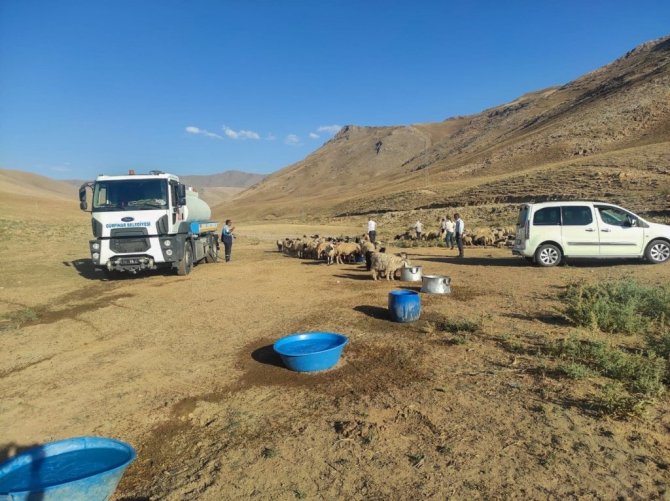 Van'ın Gürpınar ilçesinde kuraklıktan dolayı göletlerin kuruması nedeniyle susuz kalan sürünün imdadına belediye ekipleri yetişti.