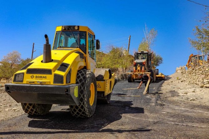 Van'ın Gürpınar Belediyesi yol yapım ve onarım çalışmaları kapsamında asfalt ihtiyacı bulunan mahallelerde çalışmalarını aralıksız sürdürüyor.
