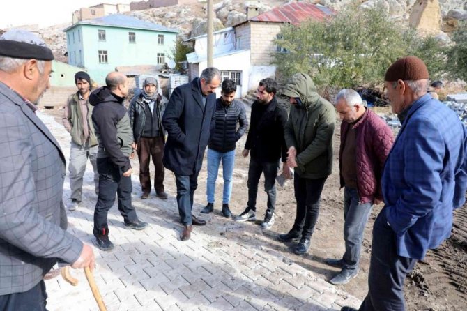 Van'ın Gürpınar Belediyesi tarafından mahalle içi yolların daha modern görünüme kavuşması için parke taşı çalışmaları aralıksız devam ediyor.