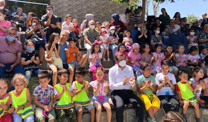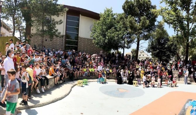 Gürsu Celal Bey Millet Bahçesi'nde gerçekleştirilen etkinlikte çocuklar, patlamış mısırları ve pamuk helvalarını yiyerek, açık havada keyifle tiyatro izleme imkanı bulurken, geri dönüşüme katkı sağlayarak ve sunulan tiyatro gösterisiyle, atıkların dönüşümüne katkı sağlama bilinci ve duyarlılığı kazanmış oldu.