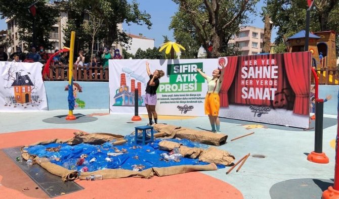 Gürsu Belediyesi'nin "Her Yer Sahne, Her Yerde Sanat" etkinlikleri kapsamında gerçekleştirilen tiyatro gösterisinde çocukların hem tiyatro izleme keyfi yaşaması hem de Sıfır Atık Projesi'ne ilişkin farkındalık oluşturmaları sağlandı. Etkinlikte, cam ve pet şişe, kağıt, pil gibi geri dönüşüm malzemelerini getirerek tiyatro bileti alan çocuklar, çöplerin dönüştürülmesiyle doğanın sıfır atık sistemiyle korunabileceği konusunda bilinç kazandı.