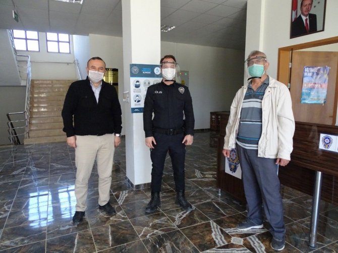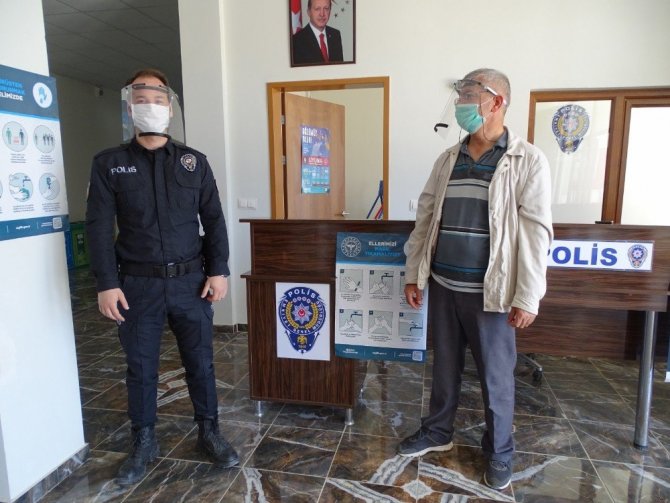 Yüz koruyucu siperlikleri teslim alan İlçe Jandarma Komutanlığı ve İlçe Emniyet Amirliği personeli öğretmenlere teşekkür ettiler.