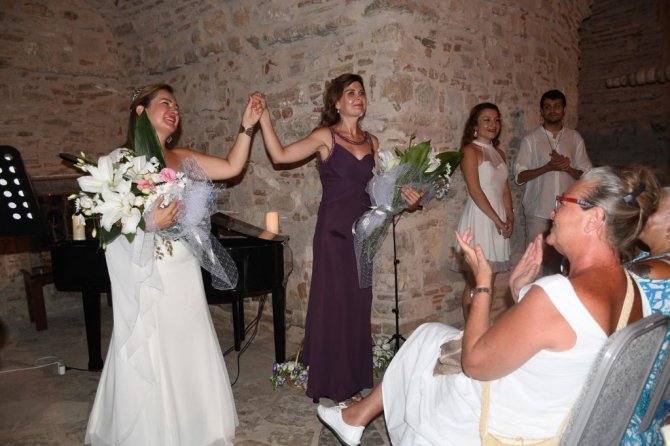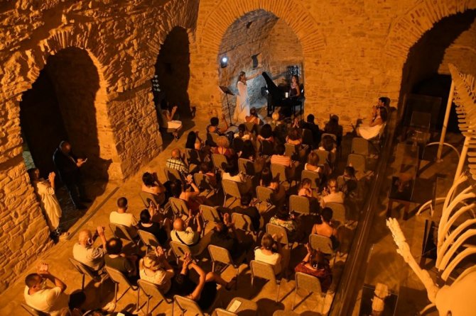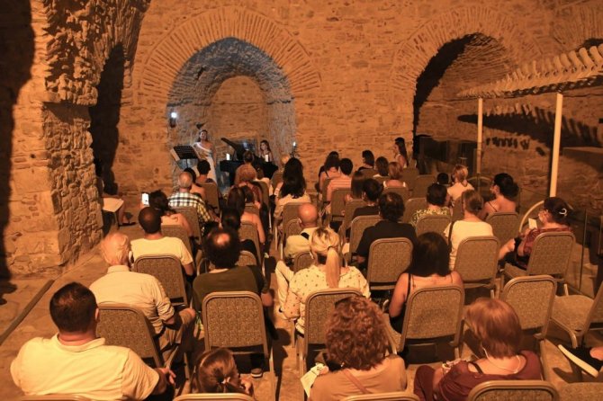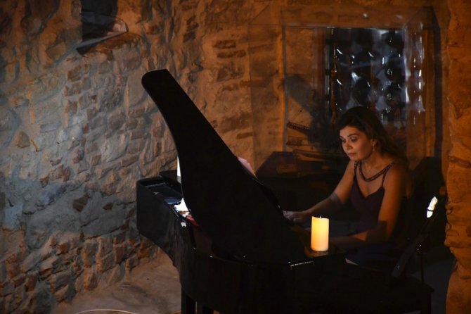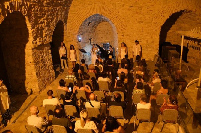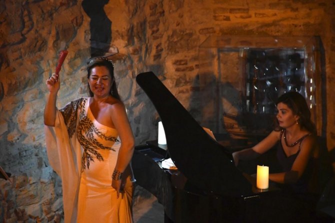 Kuşadası'nın tarihi Güvercinada Kalesi'nde Soprano Olcay Şahin'in sahne aldığı bir şan resitali düzenlendi.