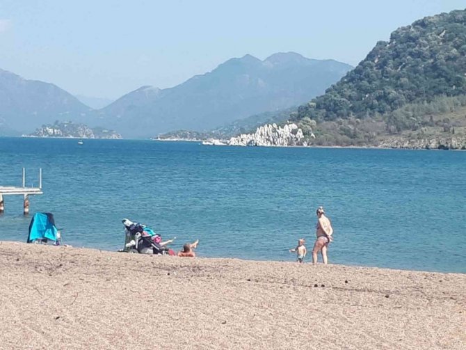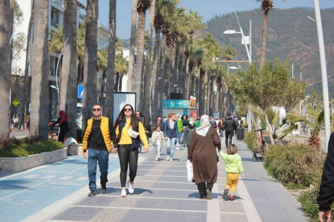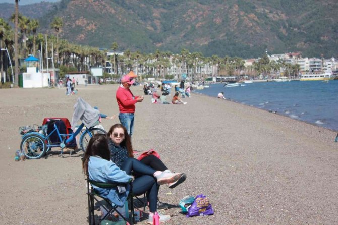 Türkiye'nin gözde turizm kentlerinden Marmaris'te hava sıcaklığının artmasının ardından güneşli havayı gören vatandaşlar sahilleri ve piknik alanlarını doldurdu.