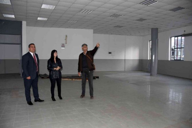 Kuşadası Belediyesi tarafından Güzelçamlı Mahallesi'nde yer alan düğün salonunda başlatılan yenileme çalışmaları sürüyor.