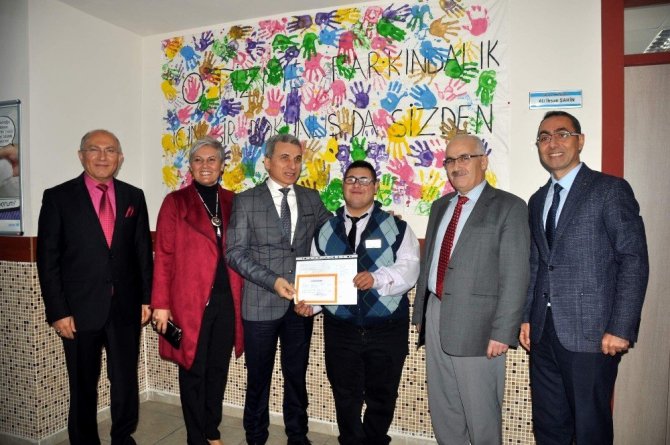Nazilli’de Daum Sendromlu, otistik ve orta-ağır düzeyde zihinsel engelli öğrencilerin eğitim gördüğü ortaokul ve lise düzeyinde eğitim veren Güzelköy Özel Eğitim İş Uygulama Merkezi öğrencilerinin ara yıl karneleri Kaymakam İbrahim Küçük ve Milli Eğitim Müdürü Şakir Cihan Koçyiğit tarafından verildi.