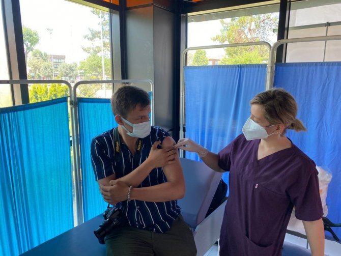 19 aşılama merkezine haber için giden gazeteciler, yoğun tempoda buldukları boşlukta aşılarını yaptırdı.