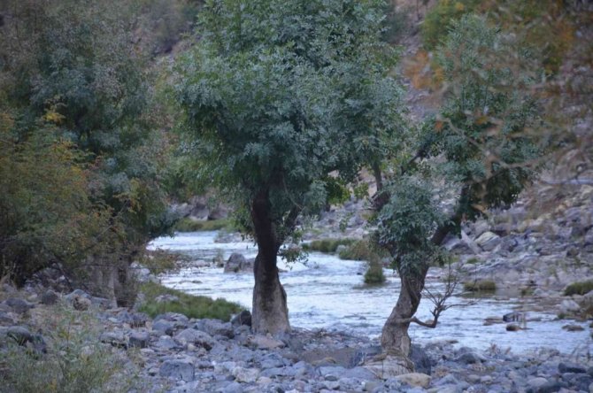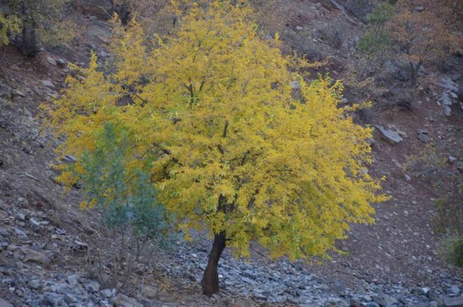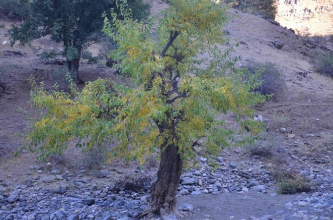 Şırnak'ın Beytüşşebap ilçesinde sonbahar aylarının gelişiyle beraber ağaçlar yaprak döktü.