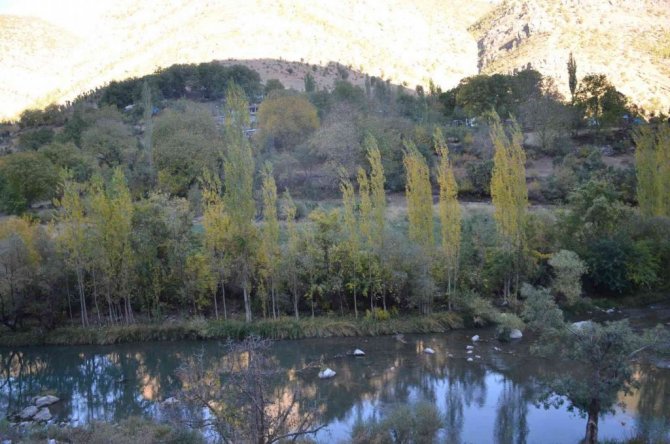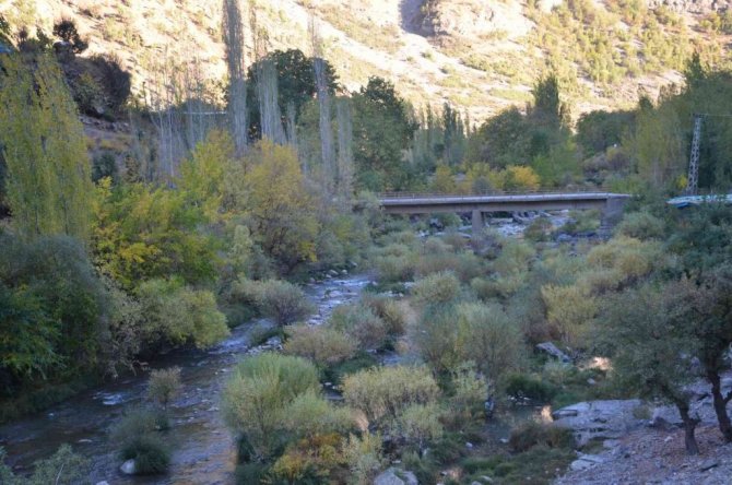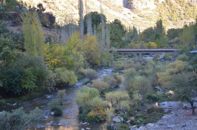 Habur Çayı etrafında ağaçların renk cümbüşü kartpostallık görüntüler oluşturdu