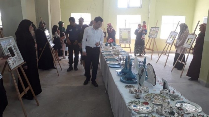 Kütahya’nın Çavdarhisar ilçesine bağlı Hacıkebir Köyünde açılan çini işlemeciliği kursuyerlerinin açtığı ’’Ateşte açan çiçekler’’ konulu sergi ilgi gördü.