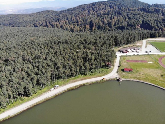 Topuk Yaylası'nda ormanın kokusu, ardından göletle buluşan sarıçam, köknar, kayın gürgen ağaçlarının görüntüsü ile birlikte farklı birçok kuş çeşidinden doğa konseri dinleyerek, patika yollarda bisiklet, gölet çevresinde çadır kampı, trekking, foto-safari gibi etkinlikleri yapabildiği görülürken, yayla drone ile havadan görüntülendi.