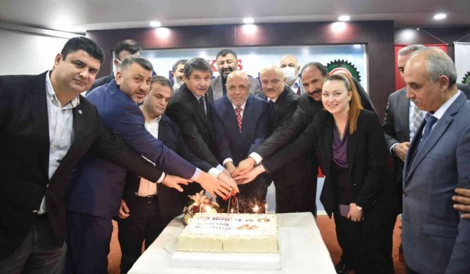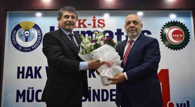 Tanrıverdi tarafından Hak-İş Genel Başkanı Mahmut Arslan'a çiçek takdim edilmesinin ardından program Hizmet-İş 44. yılına özel pasta kesilmesiyle son buldu.