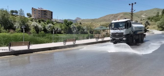 Hakkari Belediyesi İtfaiye Müdürlüğü ekipleri tarafından Gulazüryan sosyal tesis çevresi ile kentin değişik noktalarındaki caddeler tazyikli suyla yıkandı.