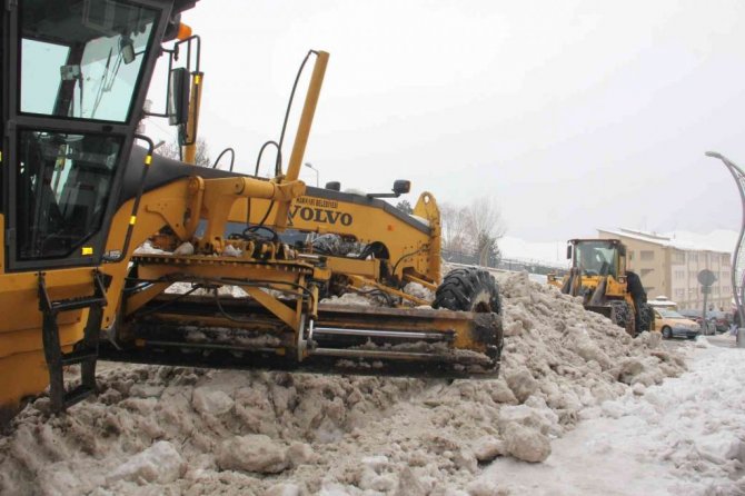 Dün gün etkili olan kar yağışı halen belirli aralıklarla etkisini sürdürüyor. Gece geç saatlere kadar mahalle yollarını kardan arındıran belediye ekipleri, çarşı merkezinde biriken kar dağlarını ise kamyonlarla şehir dışına çıkartma çalışması başlattı. 6 iş makinesinin katıldığı karla mücadele çalışmalarında cadde ve sokaklarda toplatılan kar yığınları kamyonlarla şehir dışına çıkartıldı. Çalışmalar devam ederken, esnaf da küreklerle belediye ekiplerine destek verdi. Belediye ekiplerine çay ikramında da bulunan esnaf, çalışmalardan memnun olduklarını belirtiler.