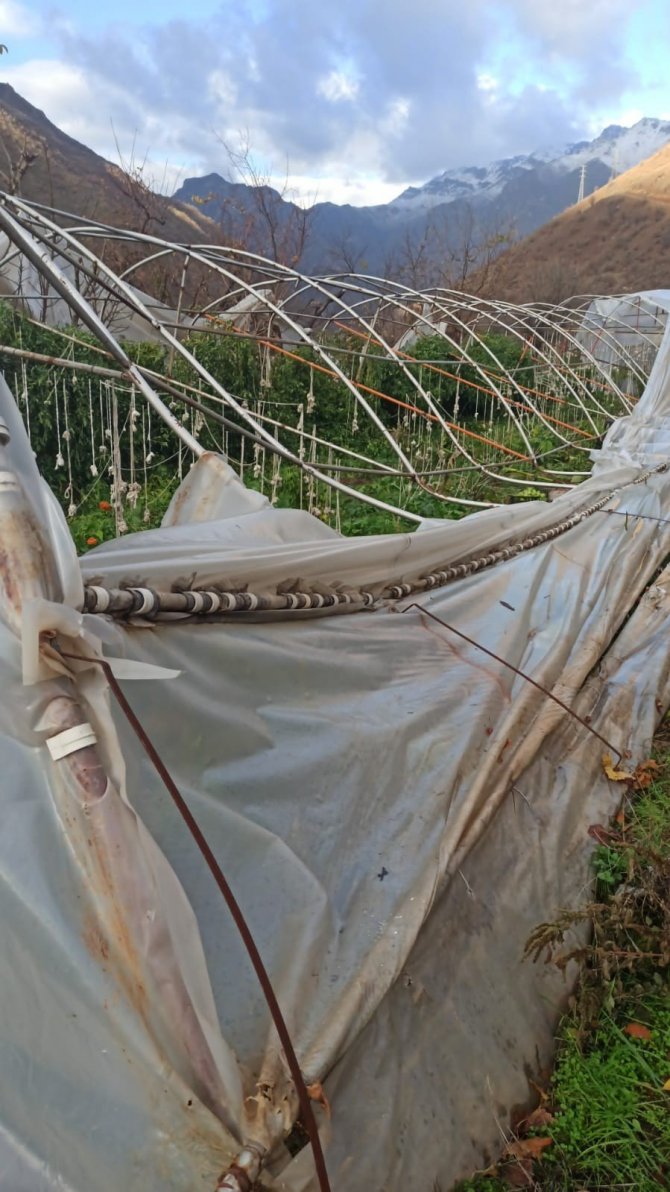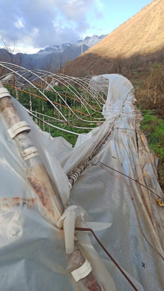 Hakkari'nin Çimenli köyü Seyitler Mahallesinde sabah saatlerinde etkili olan şiddetli rüzgar, seralara zarar verdi.