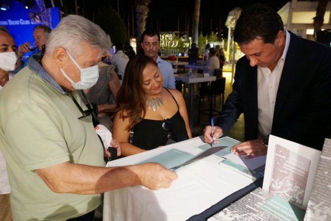Başkan Aras, imza ve tanıtım etkinliğinde yaptığı konuşmasında Bodrum'un öne çıkan değerlerinden biri olan Cevat Şakir Kabaağaçlı'nın önemine vurgu yaparak şu sözlere yer verdi: "Balıkçı'nın anısını daha fazla yaşatmak için çalışmalar yapıyoruz. Halikarnas Balıkçısı, "Bir gün gelecek herkes Bodrum'u tanıyacak." diyecek kadar Bodrum hayranıydı. Halikarnas'ın bahçıvanı ve balıkçısı, Bodrum'a sadece cebine doldurduğu tohumları serpmedi. O Bodrum oldu, Bodrum o oldu. Halikarnas Balıkçısı'nın manevi oğlu Şadan Gökovalı'yı kaybetmeden önce bende kendisi ile tanışma fırsatı buldum. Bize Balıkçı'nın el yazmalarını, notlarını bağışladı, bu belgeleri müzemize kattık. Balıkçı doğa biriktirdi, insan biriktirdi. Onun bize mirası bu duygulardır."